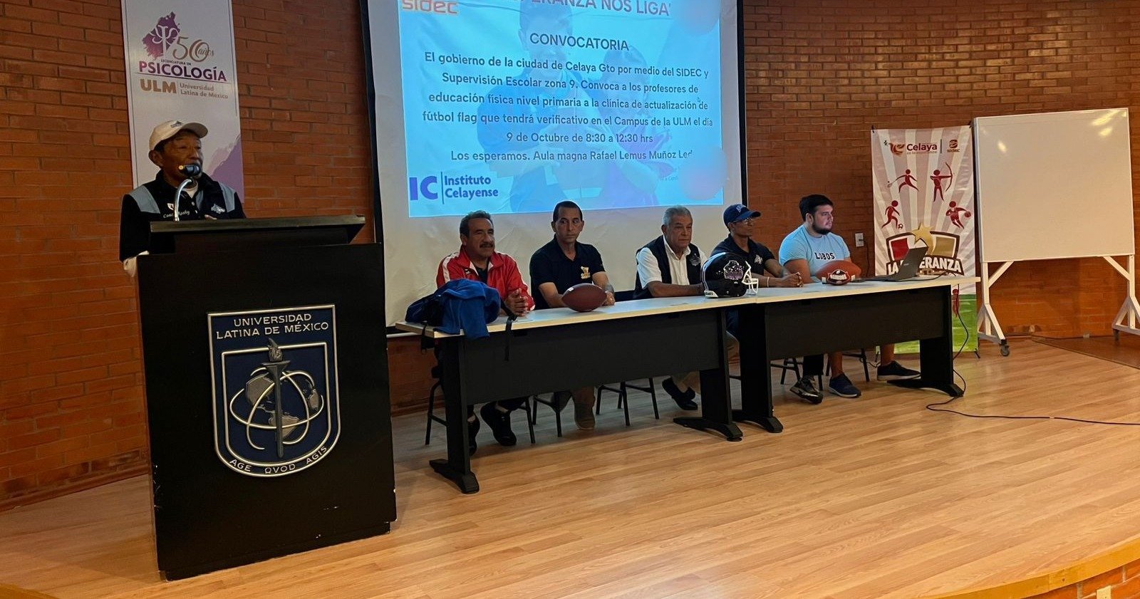 En representación de Alma Gorety Martínez García, directora del Sistema de Cultura Física y Deporte de Celaya (SIDEC), estuvo Moisés Naranjo Acosta, jefe de la unidad de Investigación y Medicina del Deporte, quien reconoció el trabajo hecho por Lobos ULM dentro del fútbol americano y fútbol flag, reiterando el compromiso de seguir trabajando conjuntamente.